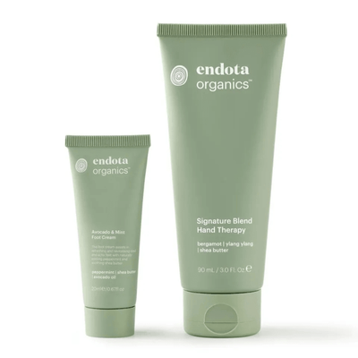 One's for your hands. The other's for your feet. Both have been brought together into the ideal holiday-ready package. Open the gift-ready bon bon to reveal a gift of our Signature Hand Blend Therapy and our Avocado & Mint Foot Cream. Both are deeply-hydrating hallmarks of our naturally-nourishing Endota Organics range. And the perfect addition to mark the festive season.