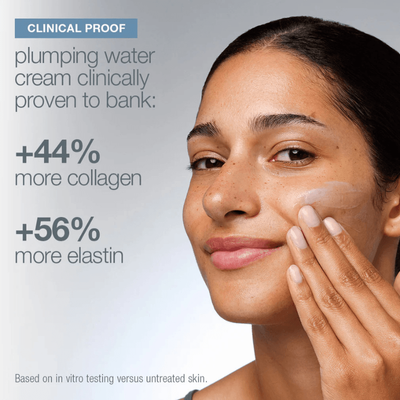 Intensely hydrating water cream helps plump and preserve collagen and elastin, supporting skin’s resilience and barrier strength for visible bounce—now and into the future. A peptide complex with Collagen Amino Acids, Zinc Glycinate, Carnosine Dipeptide, and ultra-hydrating Jojoba Ester fights oxidative stress to help delay signs of skin ageing. Extremophilic Red Algae works with White Clover to visibly firm and smooth skin. Infused with mineral-rich marine spring water, our water-burst technology activates on contact to deliver moisture-rich multipeptides and humectants for deep hydration. Biofermented Radish Root Extract locks in moisture and strengthens skin’s protective barrier.