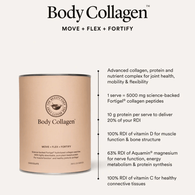 Body holding you back? Find freedom of movement with Body Collagen™. This fortifying collagen, protein and nutrient complex harnesses Fortigel® a highly researched form of type ll collagen peptides - scienfically backed to support healthy joints, cartilage and ligaments. Whether you're highly active or finding movement more challenging, reach for this versatile, gut-friendly formula to support your mobility, flexibility, muscle function and to keep your body moving freely.